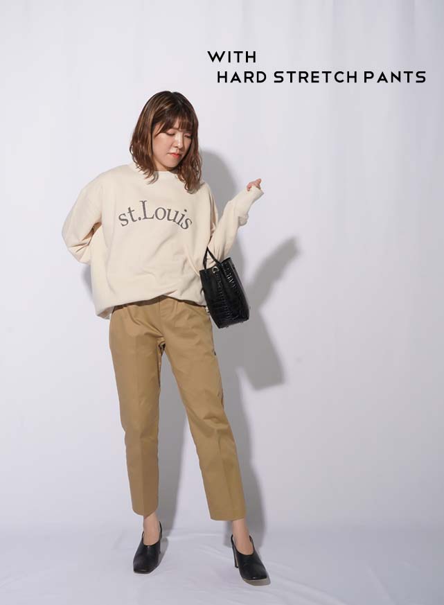 スウェットだから、きまりすぎない大人カジュアルスタイルの完成!