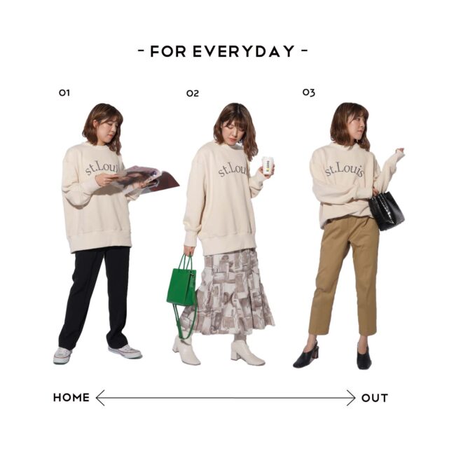 ワンマイルのお出かけにもぴったりなアイテム、スウェット!